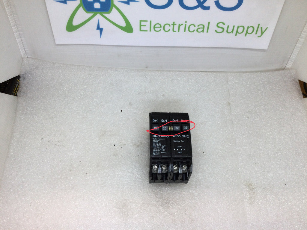 Eaton/Cutler-Hammer BQC215220 2 Pole 15A/20A-20A/15A 120/240VAC Type BRD Quad Circuit Breaker