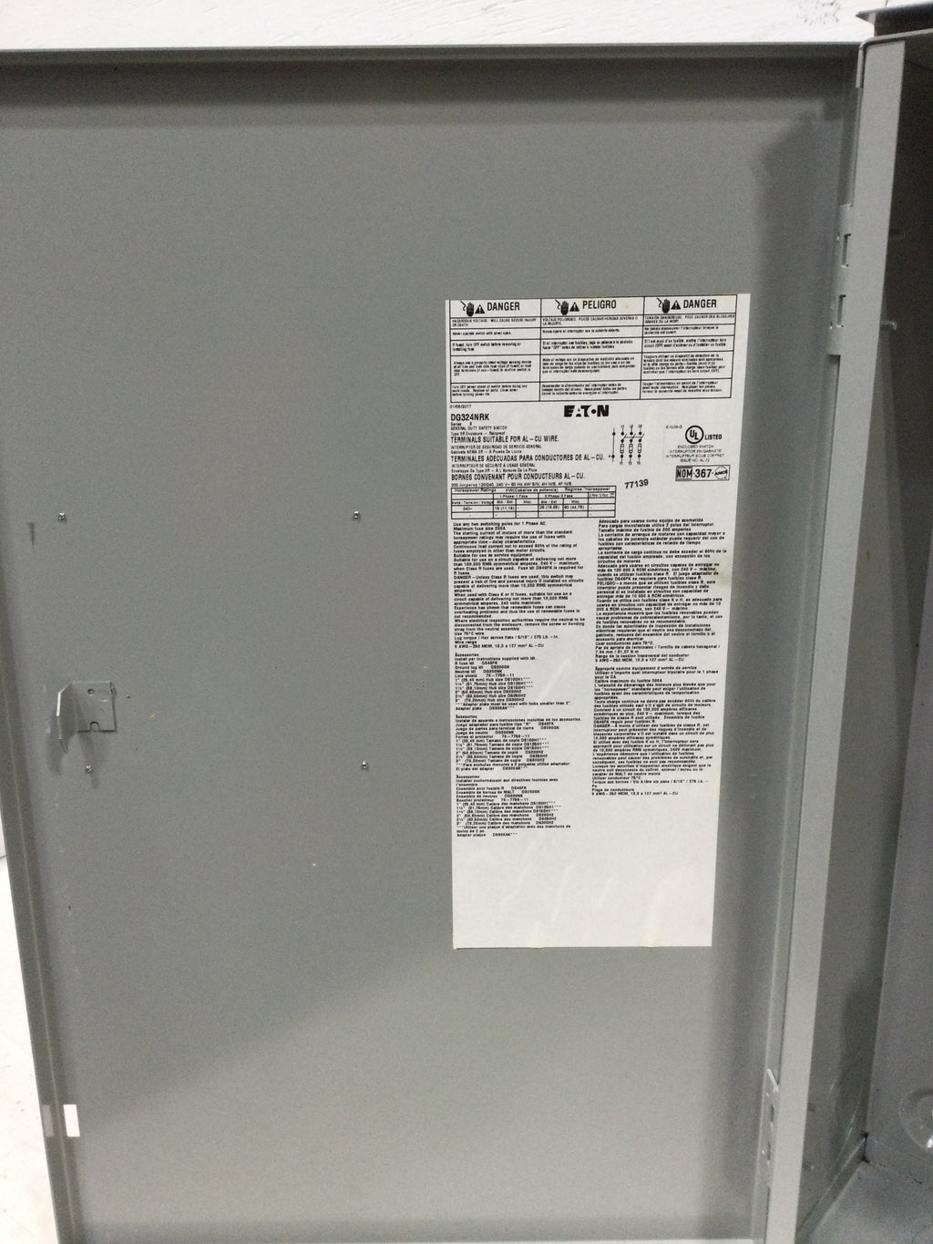 Eaton/Cutler-Hammer DG324NRK 200 Amp 3 Pole 240V Fused GD Safety Switch