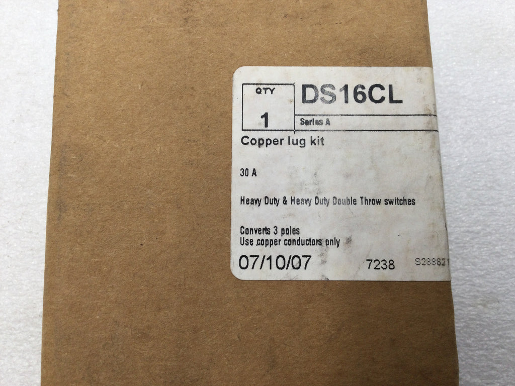 The Eaton/Cutler-Hammer DS16CL Copper Lug Kit is engineered for Heavy Duty and Double Throw Switches, ensuring secure and reliable copper connections. This kit enhances electrical conductivity and durability, providing a professional-grade solution for robust switch installations. Ideal for maintaining optimal performance in demanding electrical systems.