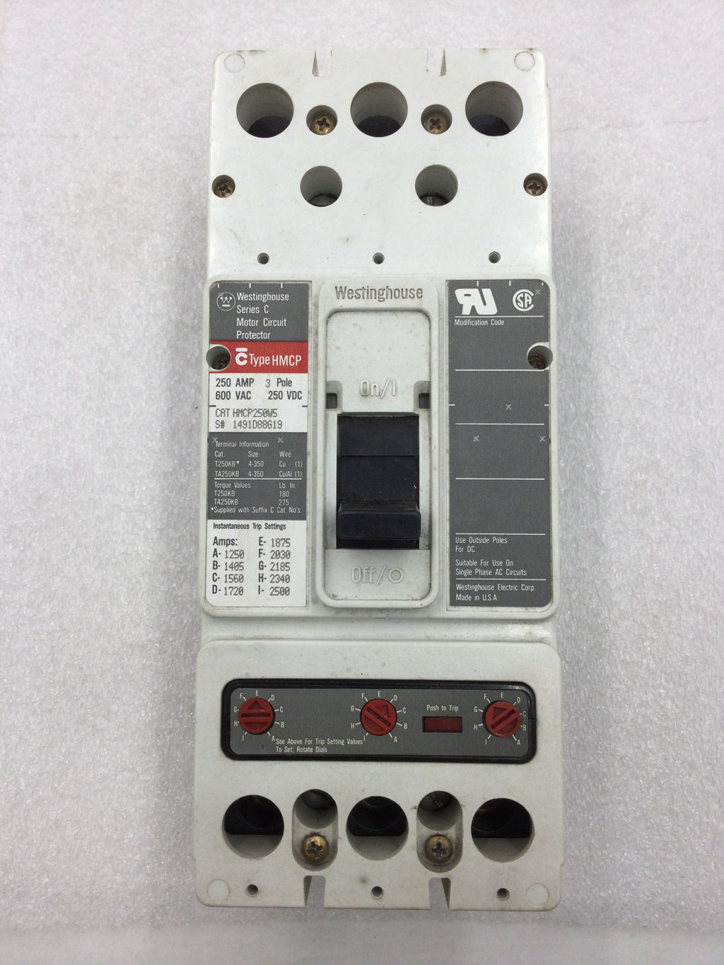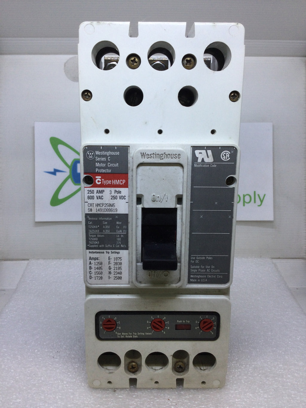 Westinghouse HMCP250W5 250 Amp 600 VAC/250 VDC 3 Pole Circuit Breaker with Shunt Trip