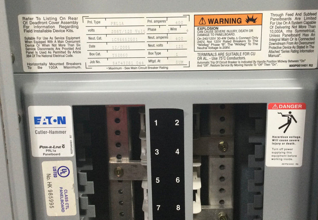 Eaton PRL1A 42 Space 400 Amp 3 Phase 208/120V Panelboard 60 1/8" x 20 1/8"