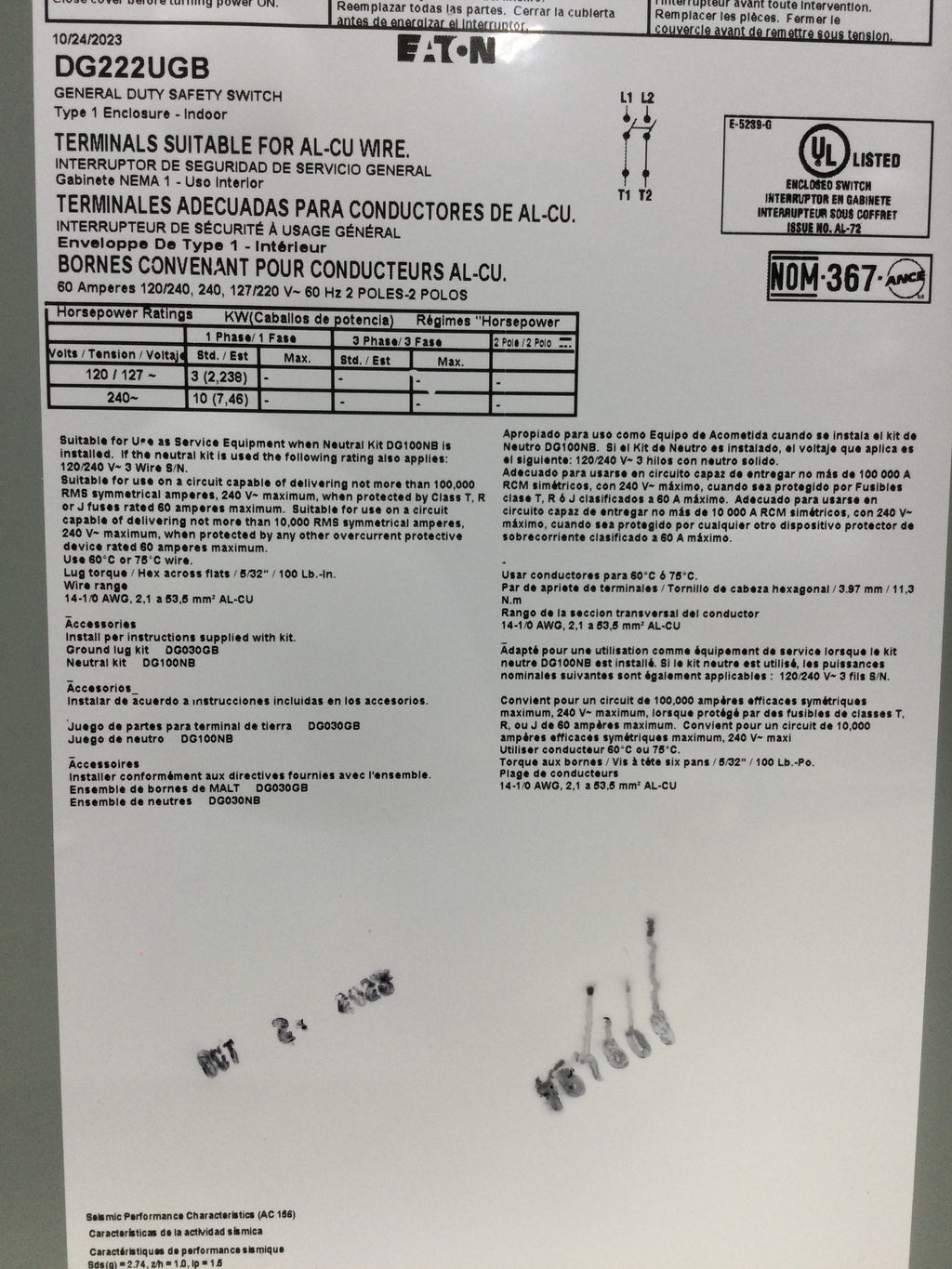 Eaton DG222UGB 60 Amp non-fusible safety switch
