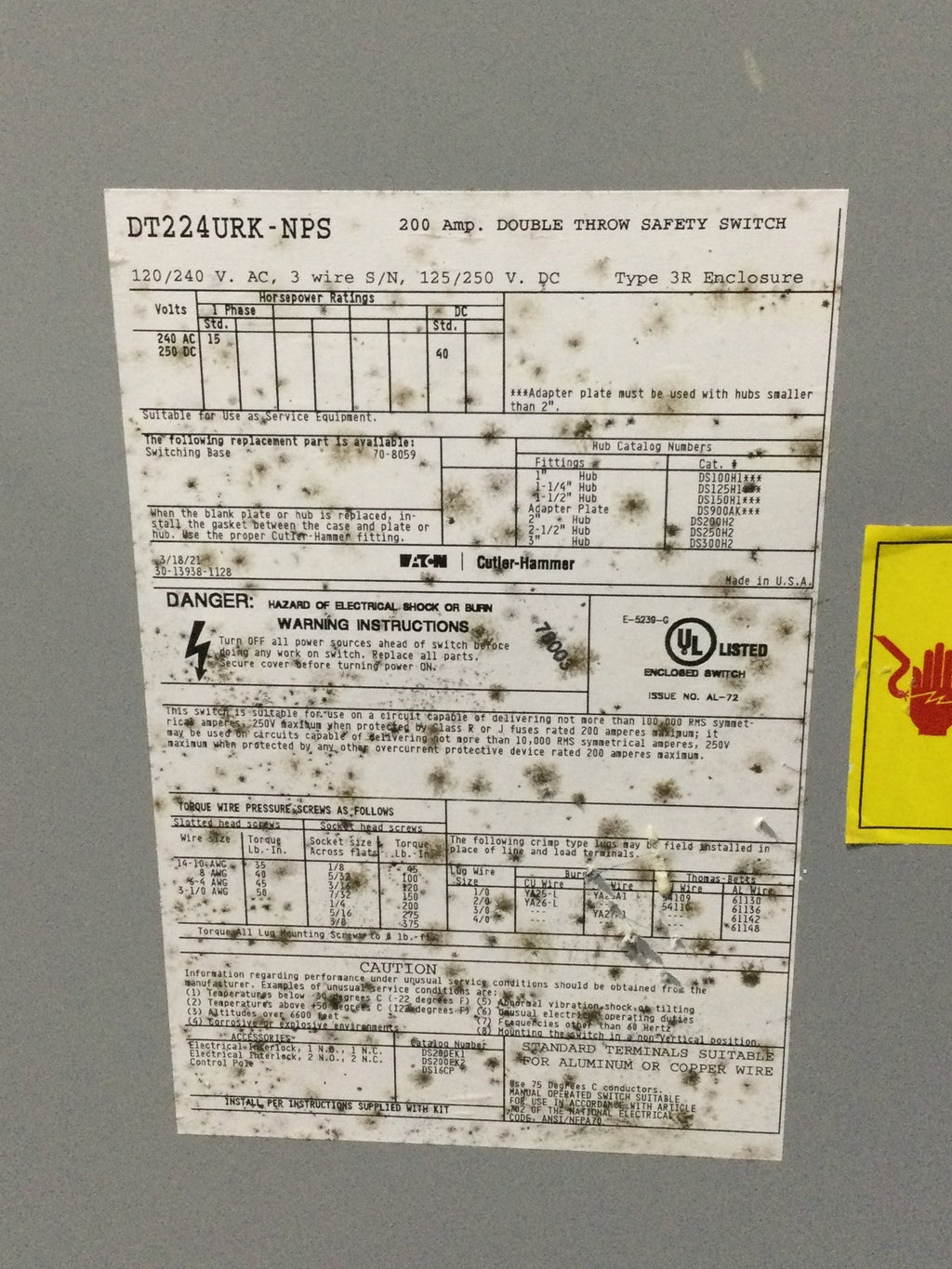 Eaton DT224URK-NPS General Duty Double Throw Switch, 2-Pole, 200A, 240V, NEMA 3R