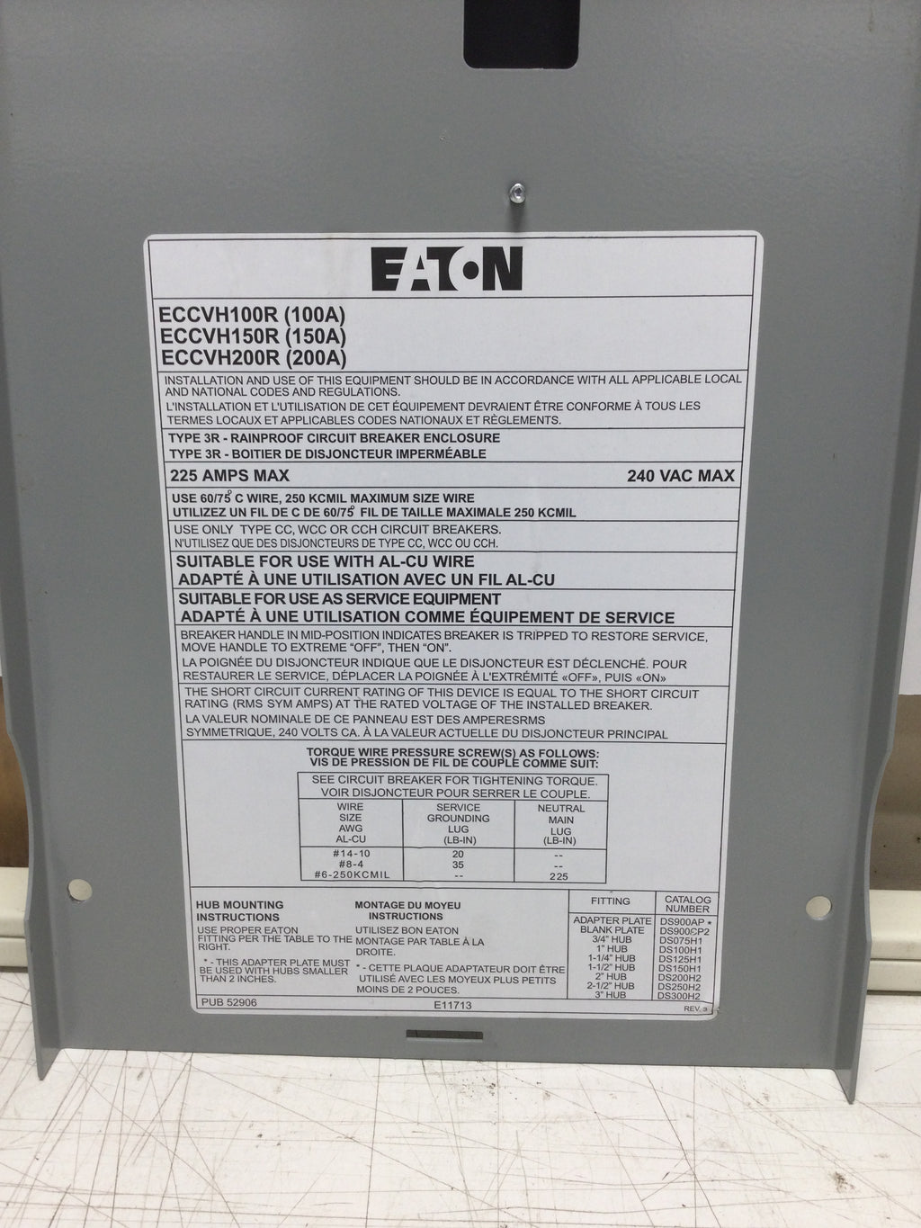 Eaton ECCVH100R 2-Pole Outdoor Front Operable Circuit Breaker Enclosure 240 VAC with CCVH2100 100 Amp Breaker