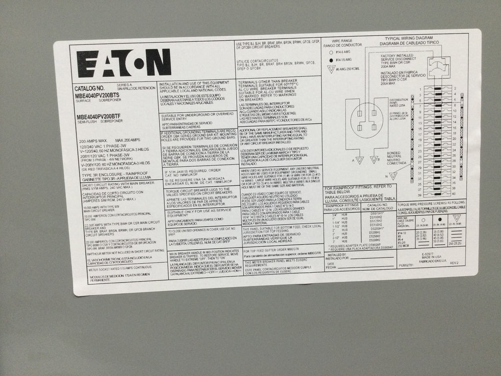 Eaton MBE4040PV200BTS 200 Amp 120/240V 1 Phase 3 Wire 40 Space Solar Ready Meter Main Combo 34" x 22"