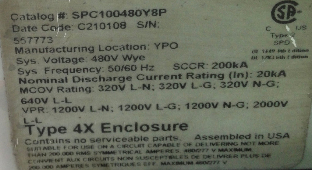 Eaton SPC100480Y8P 3 Phase 480V Surge Protector Device