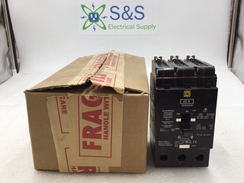 Square D EDB34040 40 Amp 3 Pole 480V Bolt On Circuit Breaker