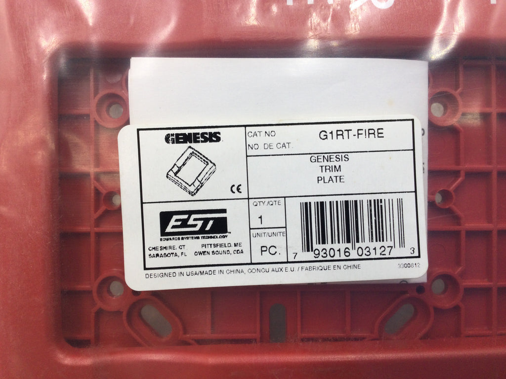 The Edwards/EST Genesis G1RT-FIRE red trim plate is a replacement or upgrade component designed for Genesis fire alarm systems. This trim plate provides a professional, finished appearance for wall-mounted installations while maintaining compatibility with EST Genesis hardware. Ideal for facilities requiring code-compliant fire safety equipment, this genuine OEM part ensures reliable performance and proper system integration.