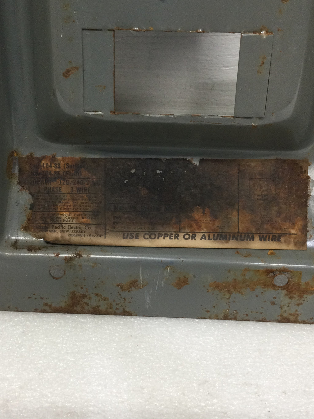 Federal Pacific 104-8S/F 100 Amp 8 Space 120/240V Dead Front 12 5/8" x 8 3/4"