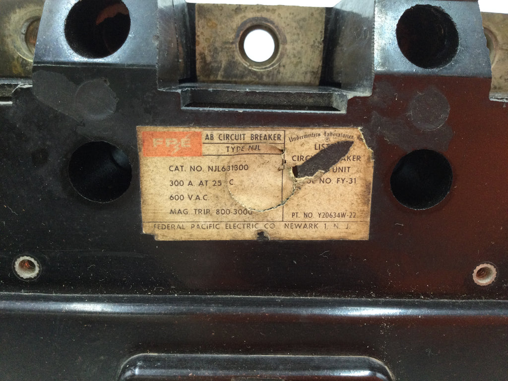 FPE/Federal Pacific NJL631300 300 Amp 3-Pole 600V Circuit Breaker