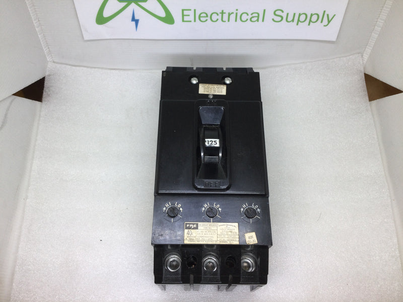 FPE Federal Pacific NFJ631125 125 Amp 3 Pole 600 VAC Circuit Breaker with Adjustable Trip