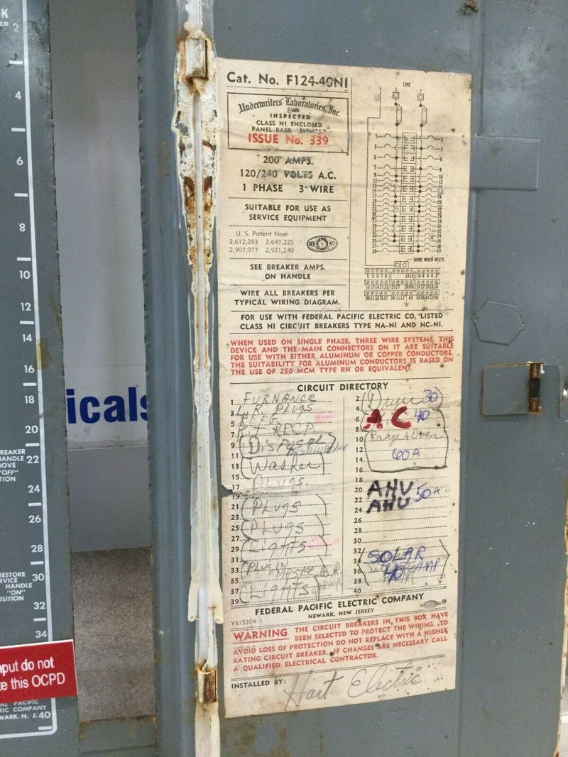 FPE Federal Pacific F124-40NI Panel Door Cover, 200 Amp, 120/240v, 20/40 Spaces