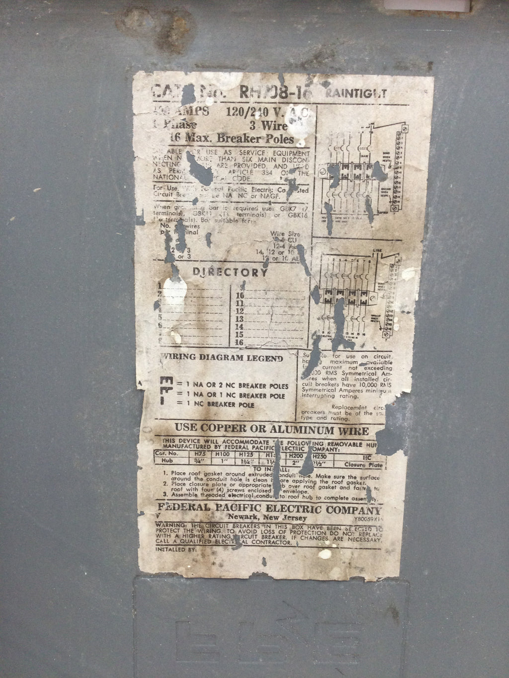 FPE Federal Pacific RH108-16 100 Amp 120/240V 1 Phase 3 Wire 16 space Enclosed Panelboard
