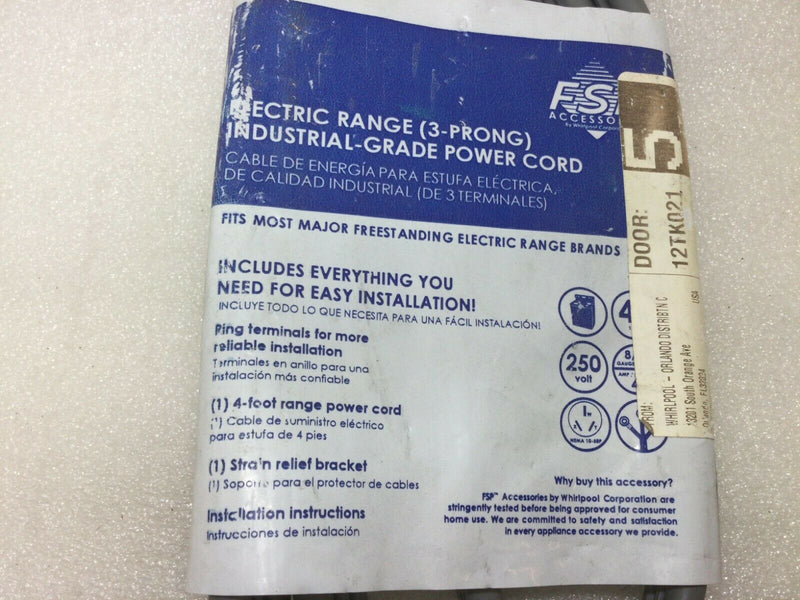 FSP PT220 40 Amp 4 Ft Universal Electric Range Power Cord