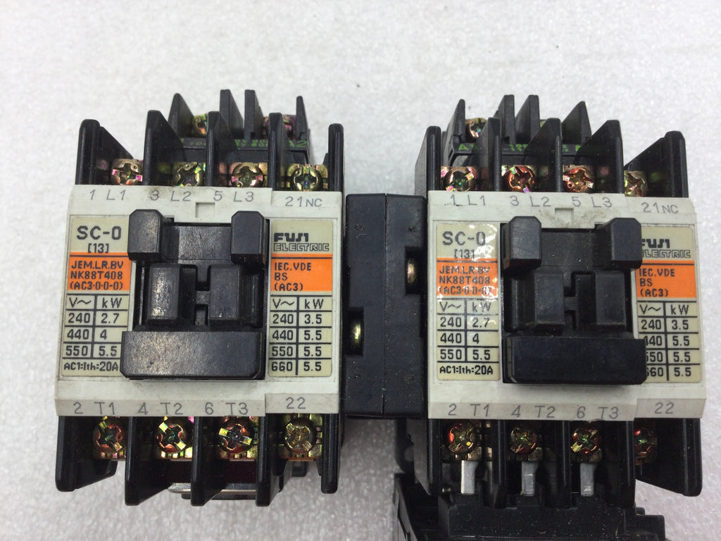 Fuji Electric SC-0 (4NCOFO) Reversing Magnetic Contactor 20 Amp 200-600 VAC 3-5 HP with TR-ON/3 Thermal Overload Relay