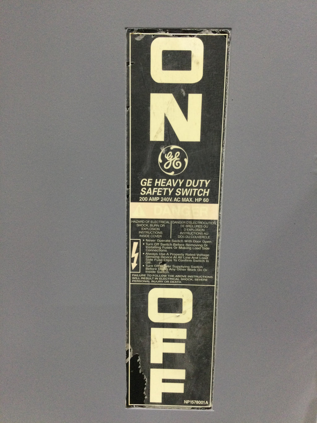 GE Heavy Duty Fused Safety Switch - 200 AMP 600 VAC MAx. HP 60 - Top Hinged Door