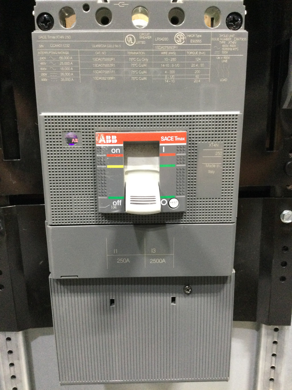 • Board: SACE Tmax XT4N250 Main Breaker