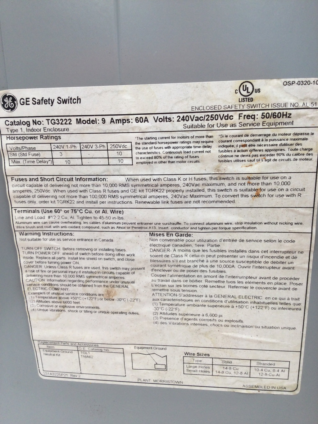 This GE TG3222 safety switch is designed to provide reliable performance for your electrical needs. With a 60 amp capacity and 2 pole 240V design, this switch ensures safe and efficient operation for your home or business. Its compact and durable structure offers long-lasting protection for your electrical system.
