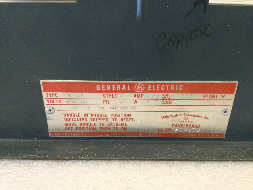 GE General Electric 225 Amp 120/208v 3 Phase 4 Wire Type NLAB Dead Front 27.5" x 9.75"