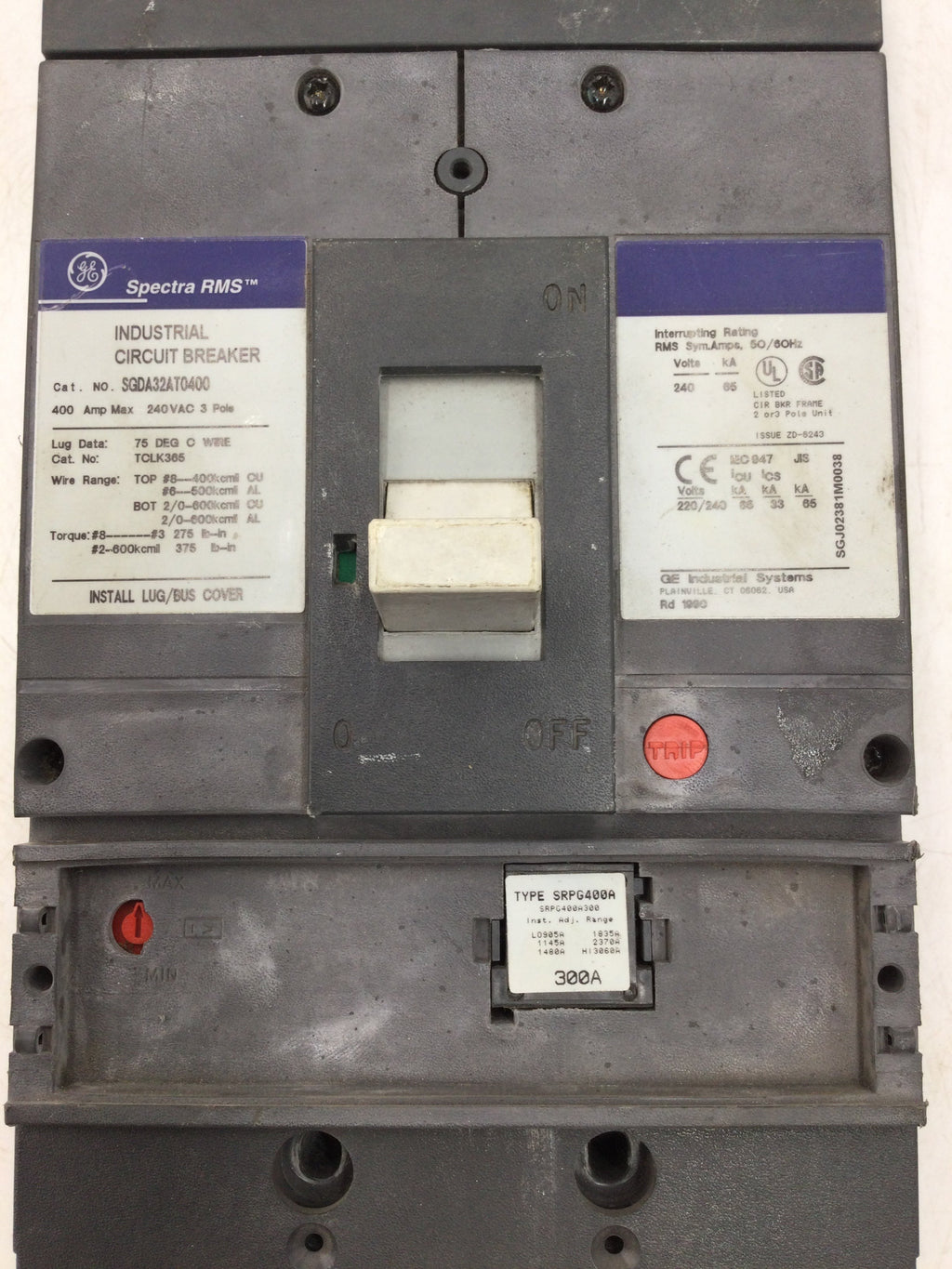 GE/General Electric SGDA32AT0400 3 Pole 400A 240VAC Spectra Series Type SGDA Frame Circuit Breaker w/300 Amp Trip SRPG400ACircuit Breaker