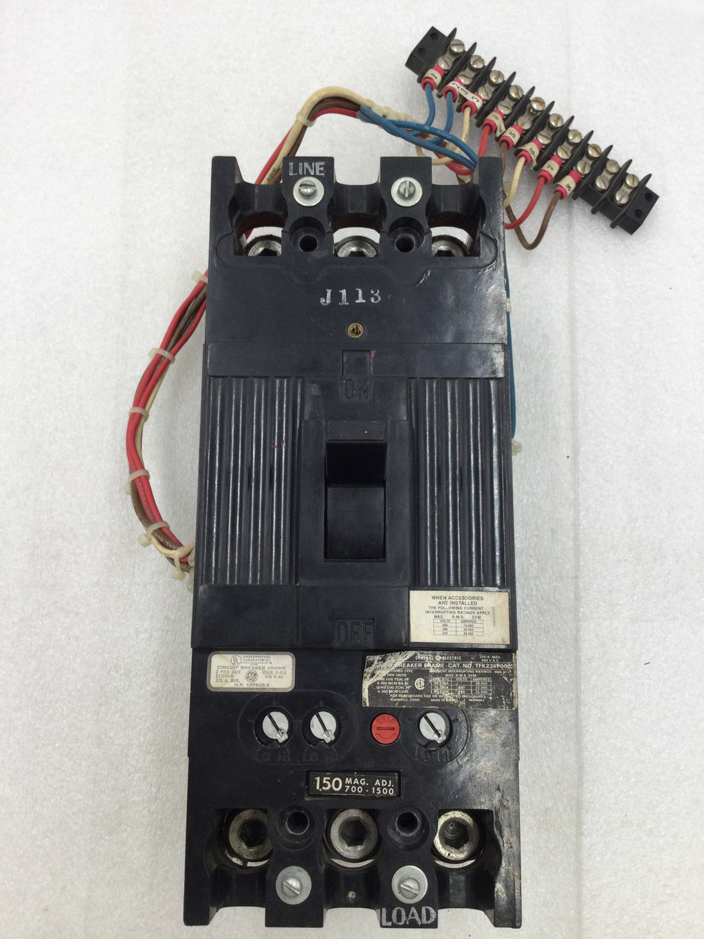 GE General Electric TFK236F000 3 Pole 225 Amp 600V 150 Mag Adj 700-1500 w/Aux Switch