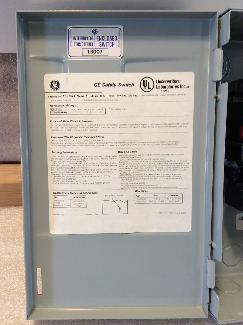 Designed for industrial use, the GE/General Electric TGN3321 30 Amp 240VAC Nema1 Enclosure General Duty Safety Switch is UL Listed for superior performance and durability. This switch features a voltage capacity of 240VAC and an amp rating of 30A, providing reliable operation for a wide range of electrical applications.
