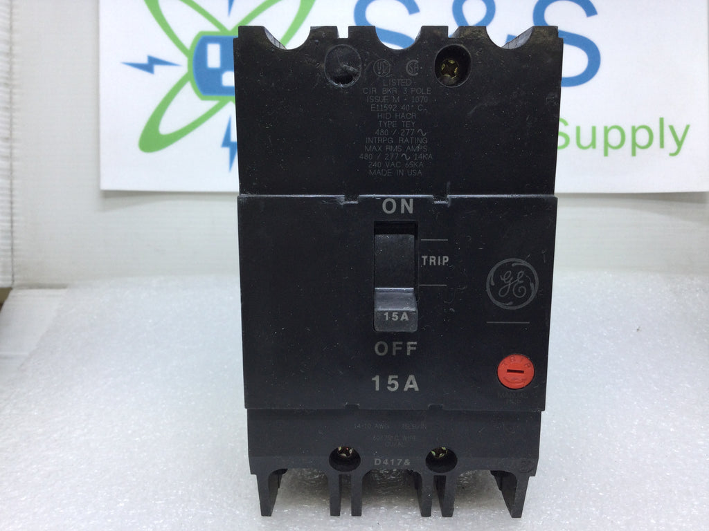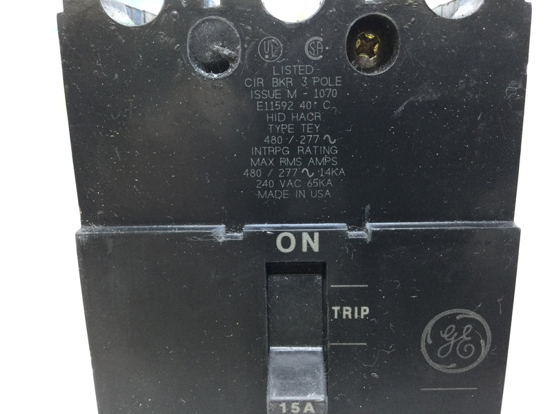 GE General Electric TEY315 15 Amp 3 Pole 277/480 14k @ 480v Circuit Breaker