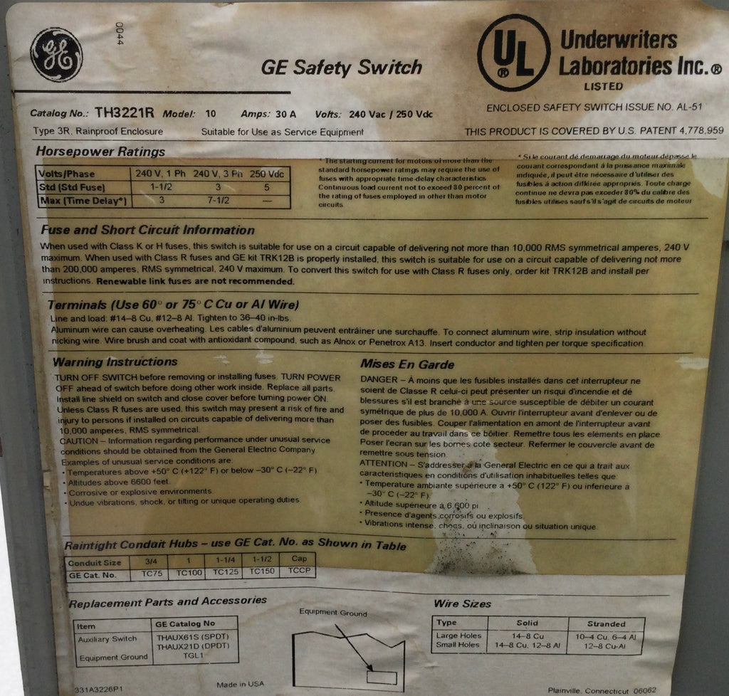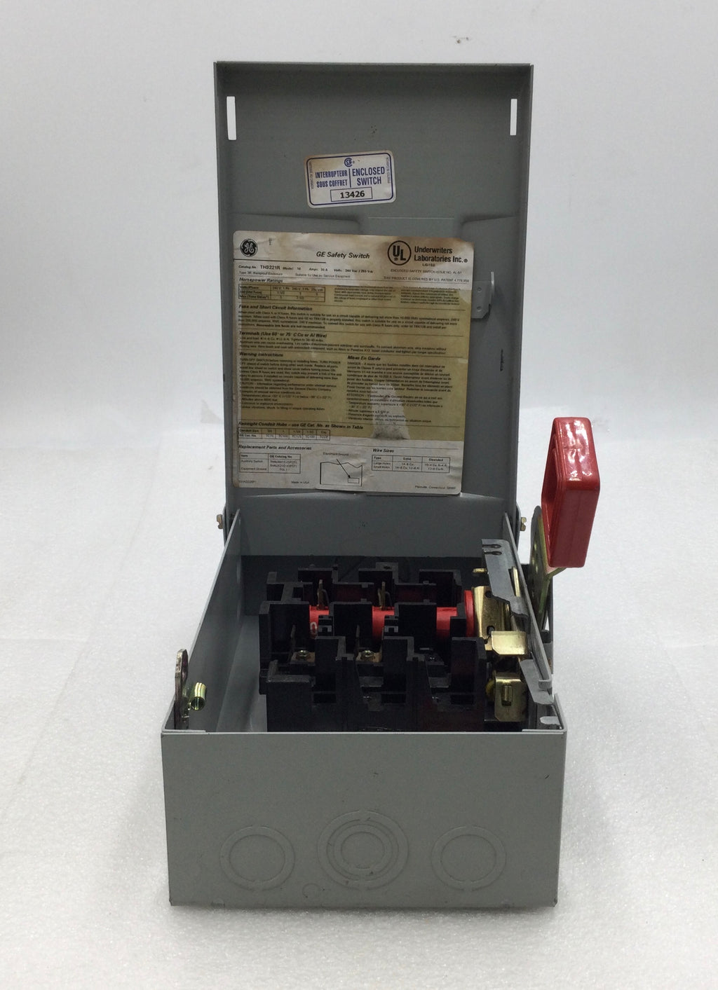 This GE TH3221R 30 Amp 3-Phase 240V Heavy-Duty Safety-Switch is designed for heavy-duty industrial use, ensuring safety and reliability. With a 30 amp capacity and 3-phase 240V voltage, this switch is perfect for high-powered equipment and machinery. Tested and used, it provides a safe and efficient option for your workplace needs.