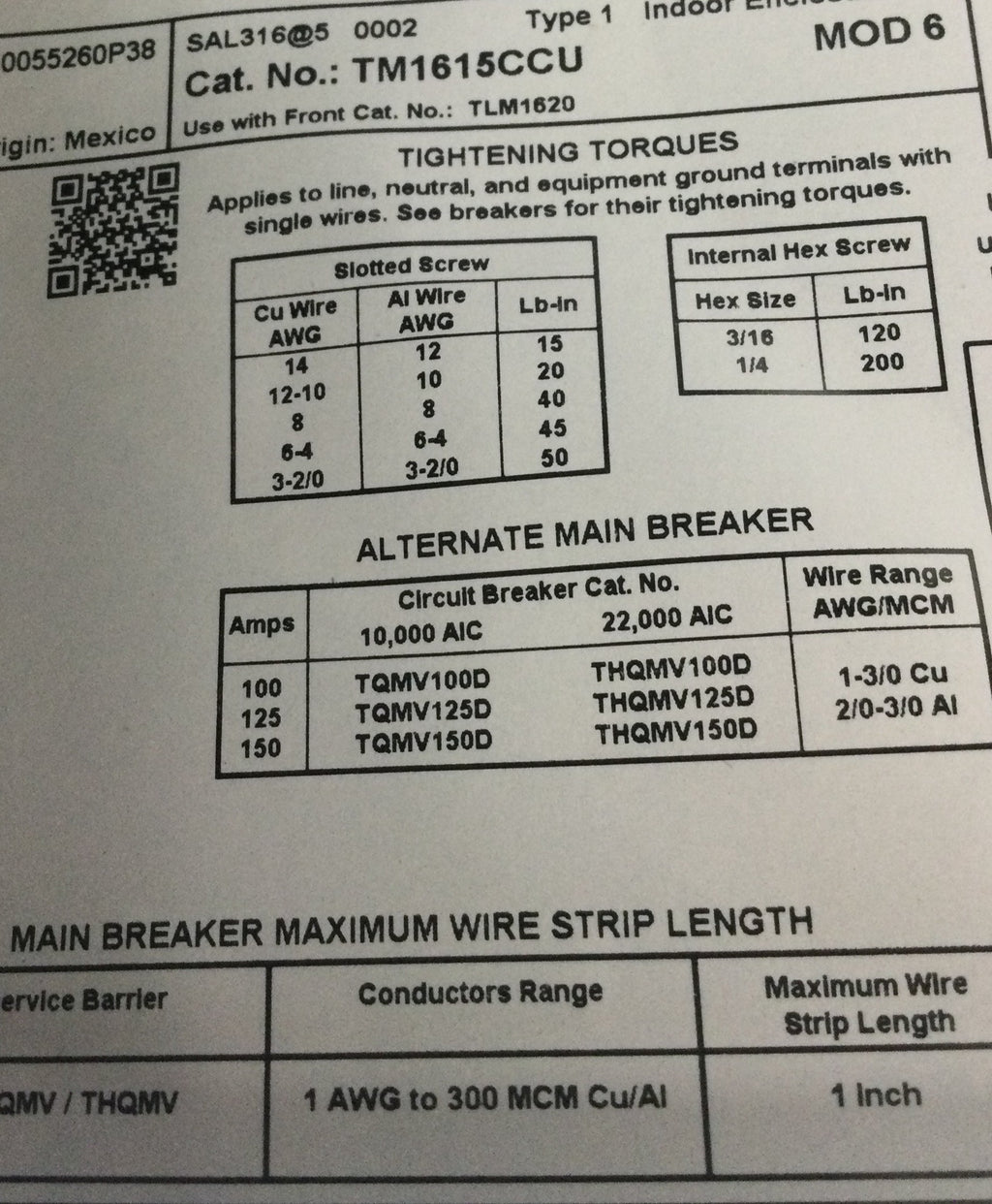 The load center includes a sturdy tin-plated copper buss bar and a galvanized box for increased durability and reliability. The 1-piece interior removes and re-installs easily. Indoor NEMA 1 enclosure with combination surface/flush front. This load center is UL listed and ANSI Certified.