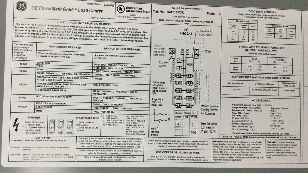 The load center includes a sturdy tin-plated copper buss bar and a galvanized box for increased durability and reliability. The one-piece interior removes and re-installs easily. Outdoor NEMA 3R enclosure. This load center is UL listed and ANSI Certified.