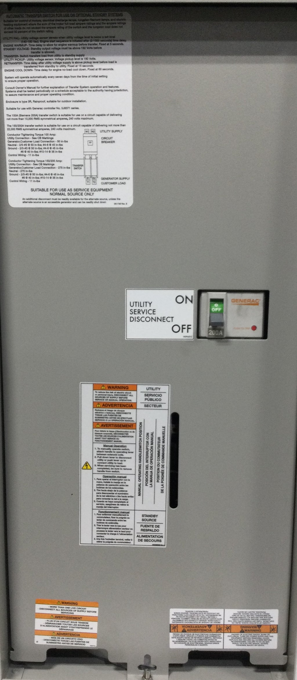Generac 10000011659 200 Amp Single Phase 240V Transfer Switch 30 1/4" x 13 3/4"