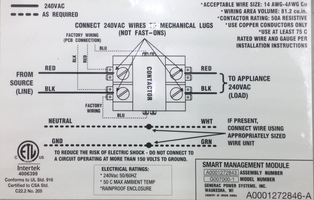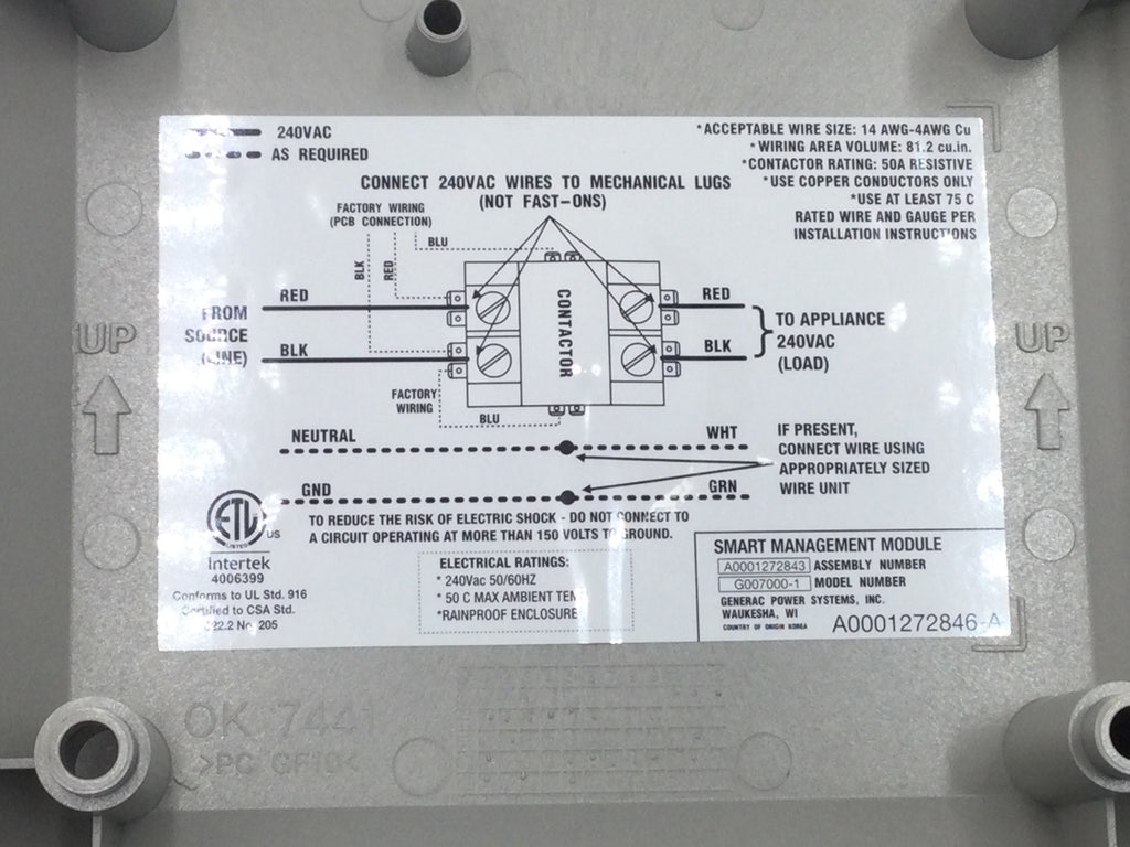 Generac G007000-1 50 Amp 240V Smart Management Module Enclosure Only/No Guts