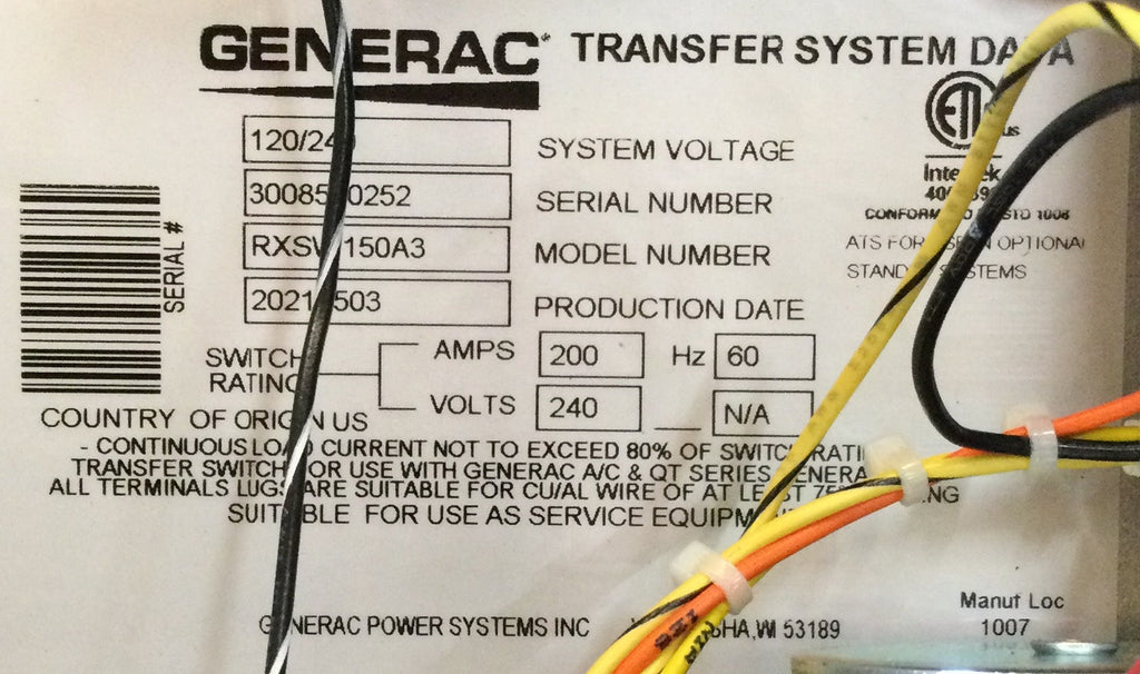 Generac RXSW150A3 150 Amp 1PH 120/240V Nema 3R Automatic Transfer Switch