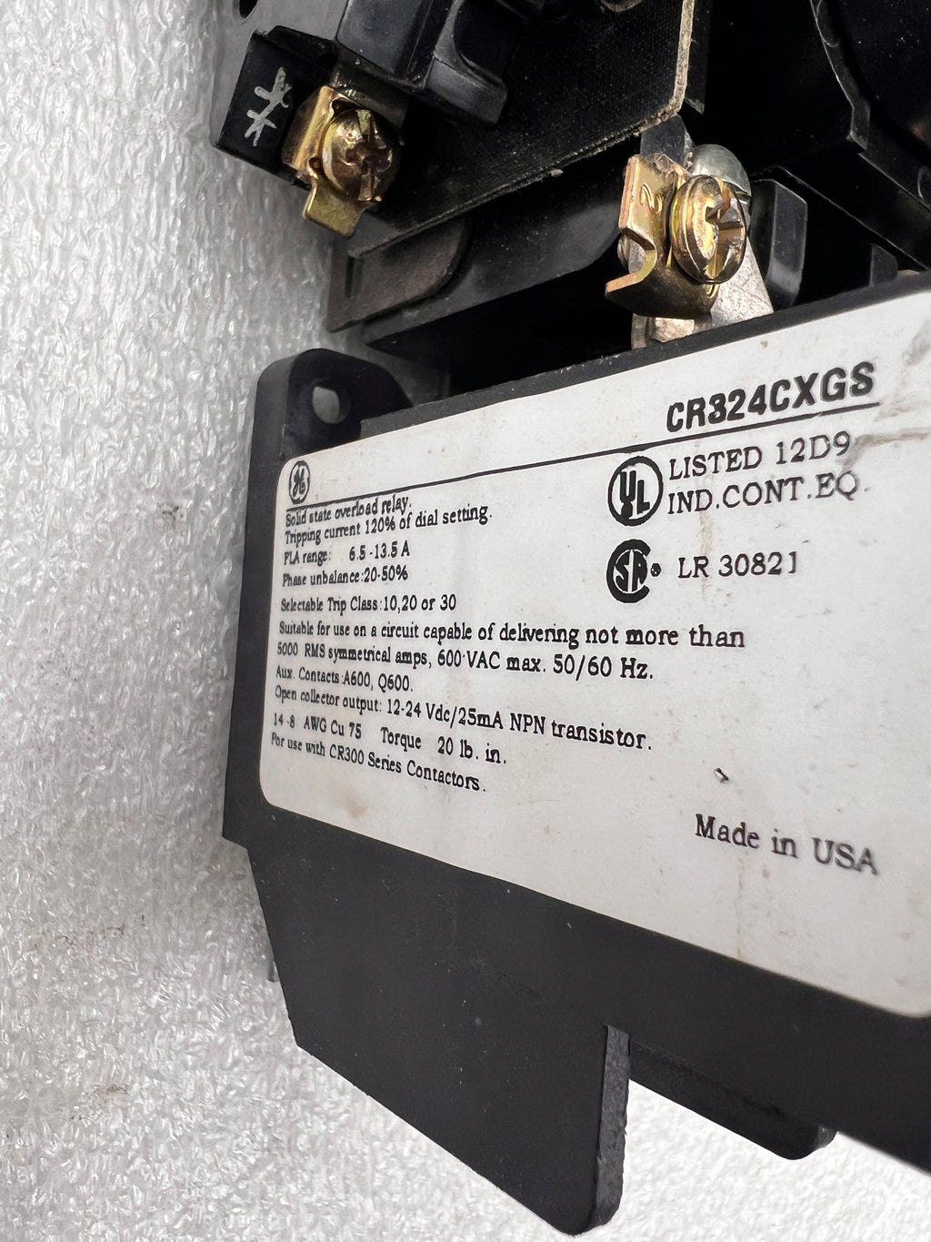 Includes: GE CR324CXGS Solid State Overload Relay