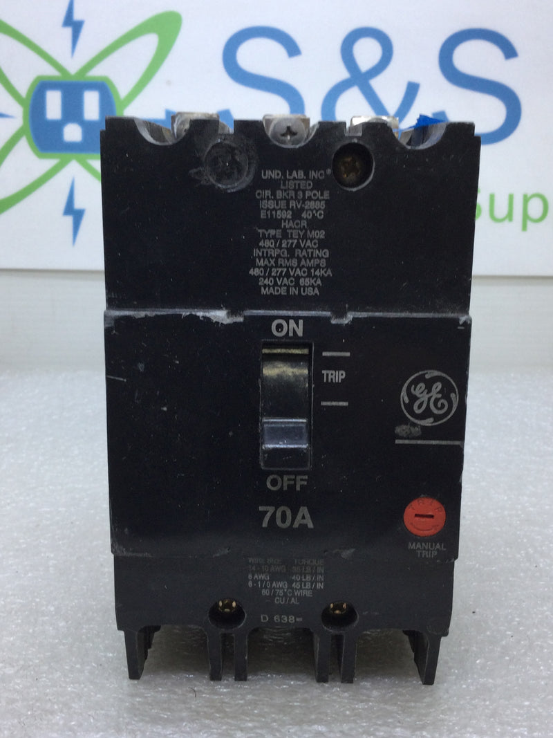 GE General Electric TEY370 3 Pole 70 Amp 480 VAC Circuit Breaker