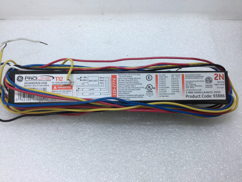 General Electric GE240PSMVN-DIYB T12 120/277V Ultra Start/Pro-Line 1-Lamp Ballast