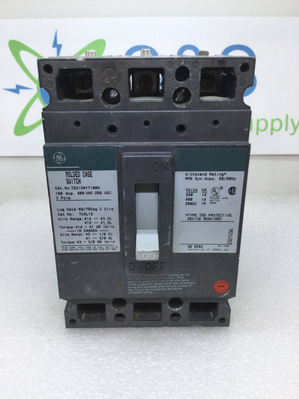 GE General Electric TED134YT100A 100 Amp 3 Pole 480V Type TED Circuit Breaker