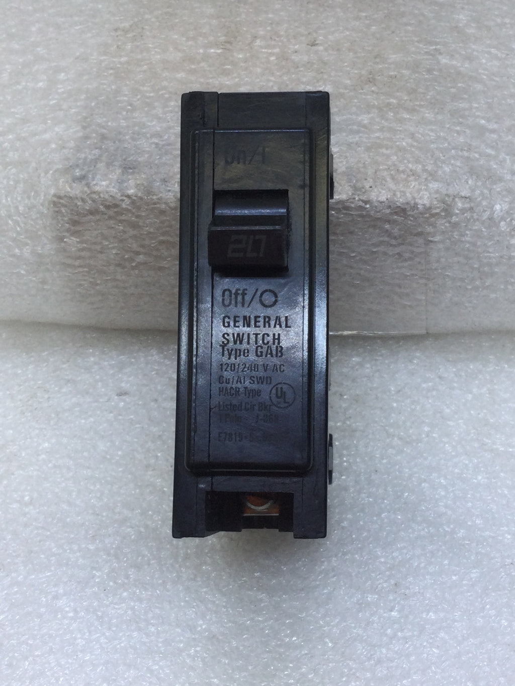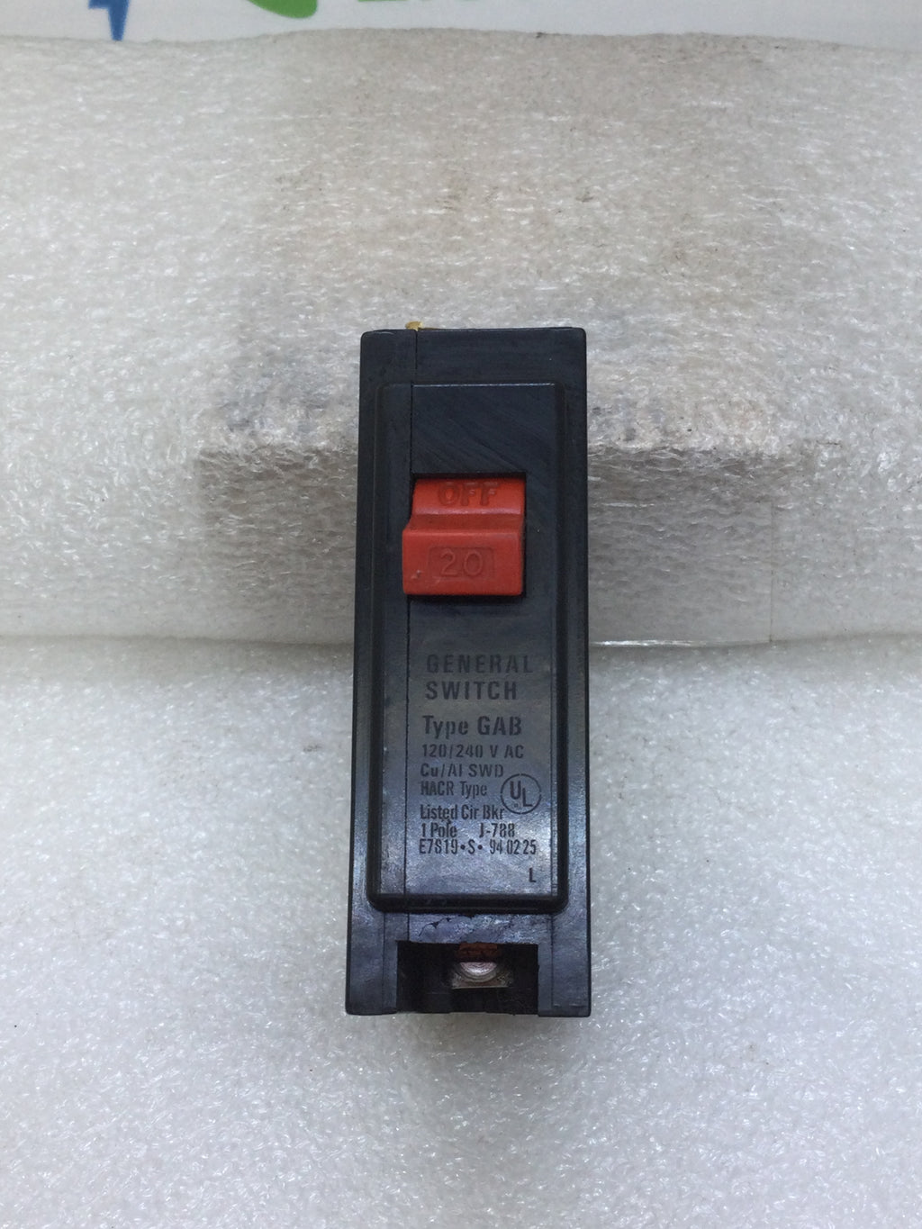 The General Switch GAB120 is a reliable 20 Amp single pole circuit breaker designed for efficient electrical protection. It provides consistent circuit interruption to safeguard wiring and enhance system safety in residential or commercial panels. Easy to install and built for durability, it ensures stable operation under normal load conditions.