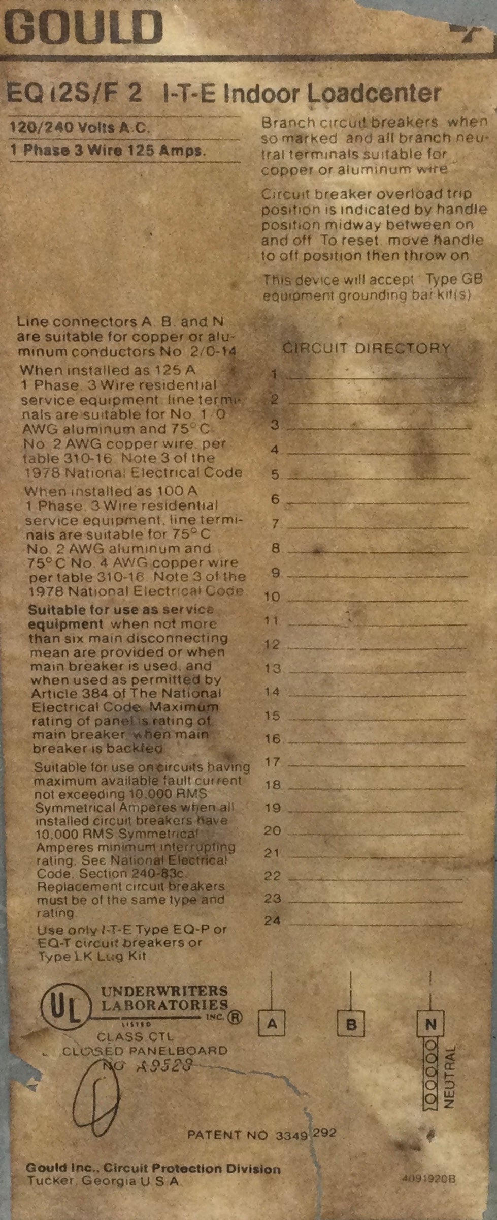 Gould EQ12S/F 125 Amp 24 Space 1PH 3W 240V Load Center Cover 14 7/8" x 12 1/2"