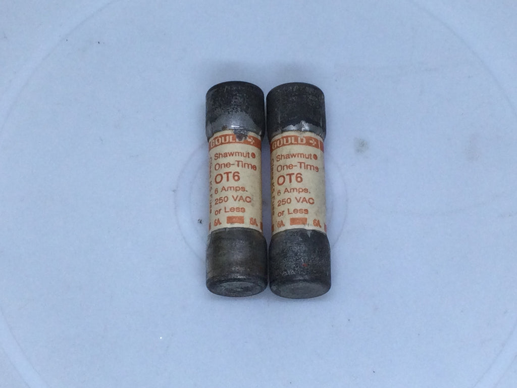 Gould/Shawmut OT6 6 Amp 250V or Less One Time Class K5 Fuse - Lot of 2