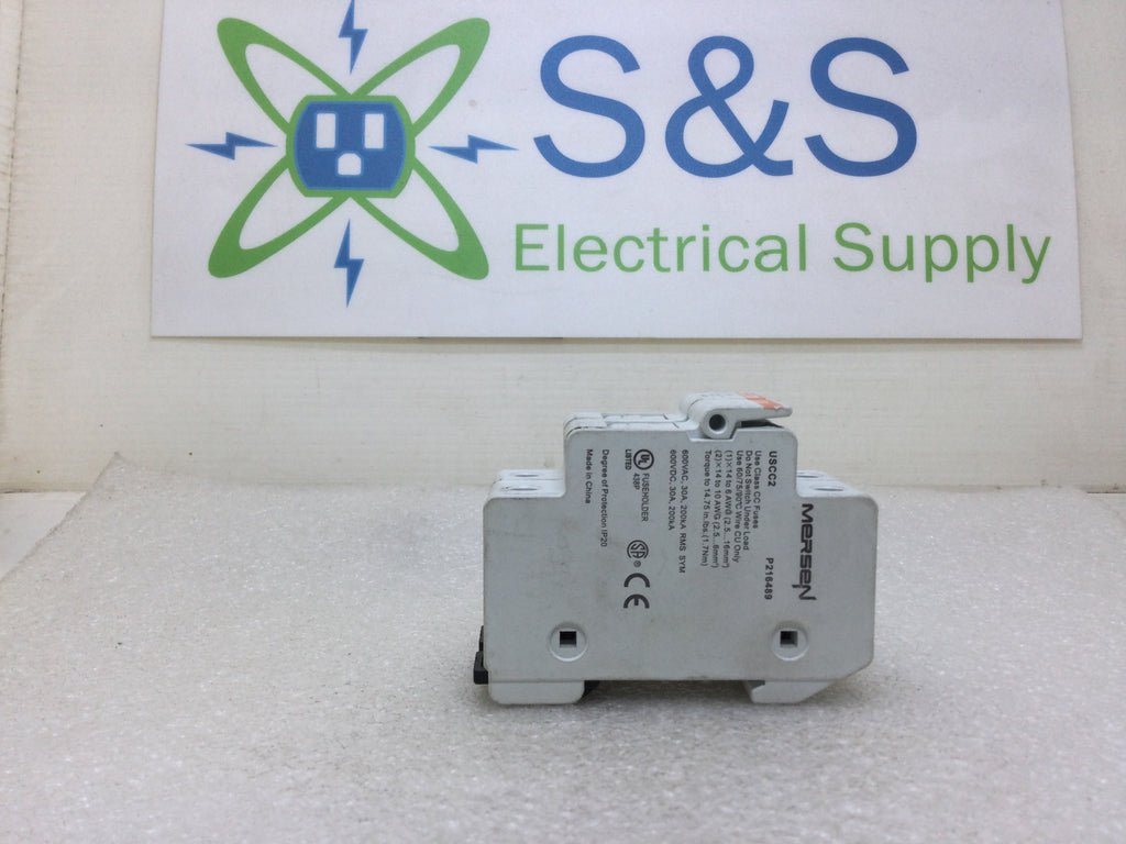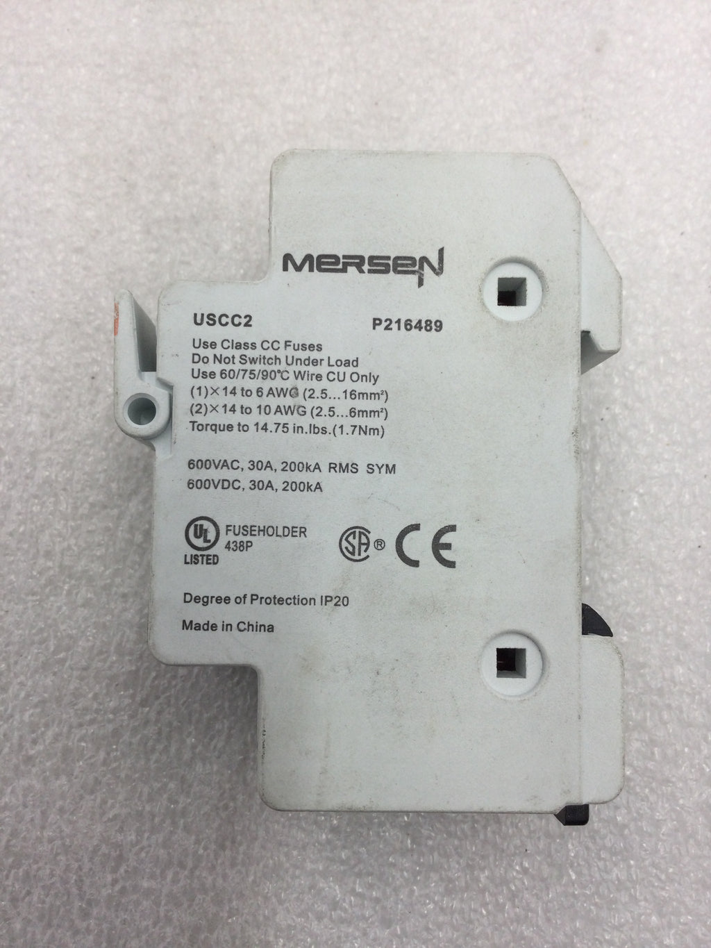 This Ferraz Shawmut/Mersen USCC2 Ultrasafe Fuse Holder is a 2 pole, 30 amp, 600 VAC holder that is designed for use with Class CC fuses. With its USCC@ features, this holder provides secure and reliable protection for electrical circuits, ensuring safety and peace of mind for your home or workplace.