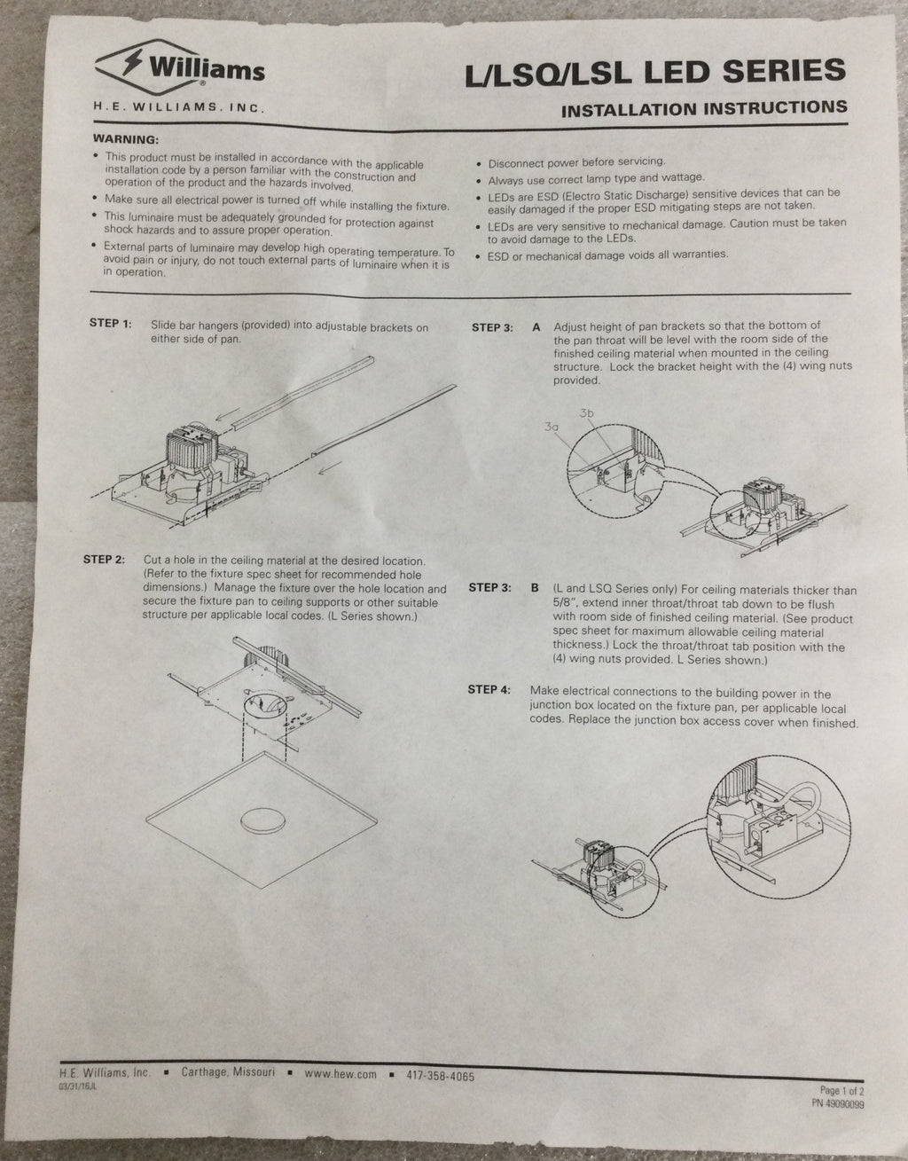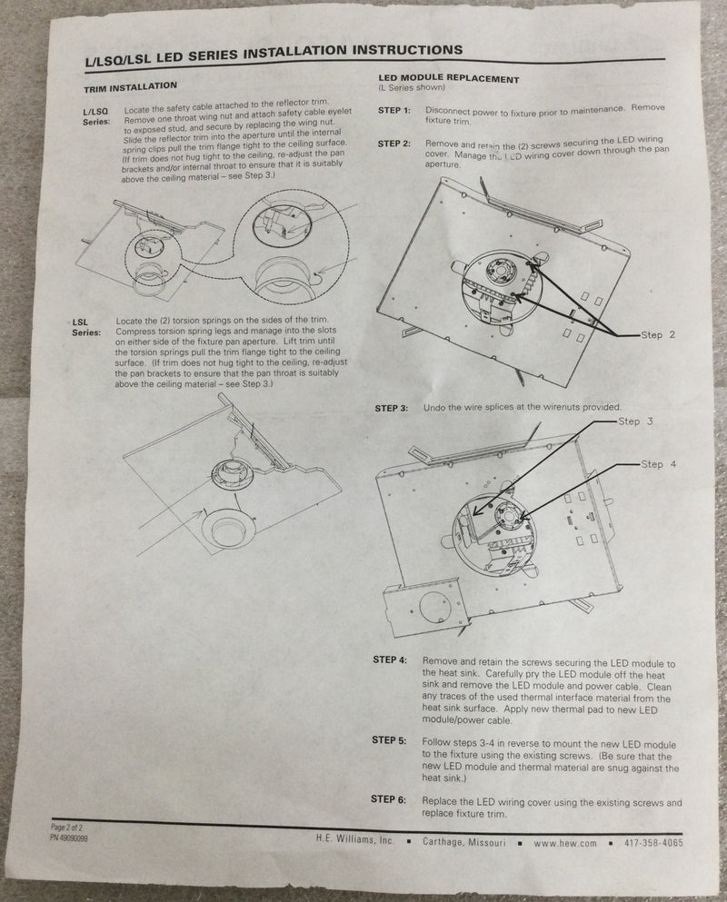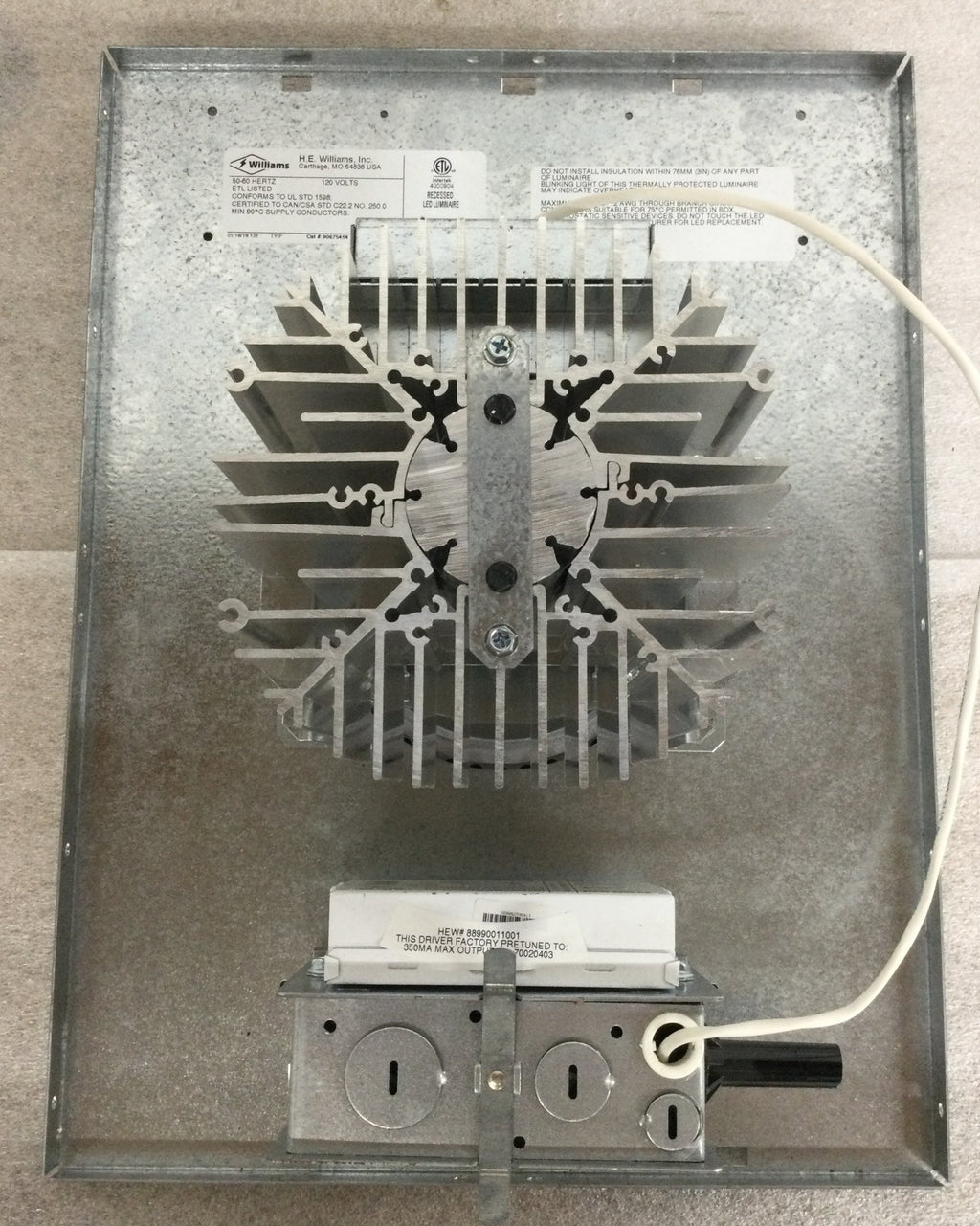 H.E.Williams Recessed LED Luminaire L45TL-llC/830-L/REFL-DRV-120 with Optotronic OT25W/PRG/1250C/UNV/DIM 25 W LED Power Supply