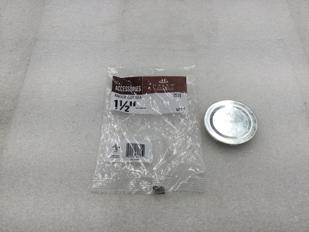 Designed for professional electrical installations, the Halex 60715 1-1/2" Knock Out Seal provides secure closure for unused knock out openings in electrical boxes and enclosures. This dry location K.O Seal ensures code compliance while preventing dust and debris from entering electrical components. Essential for clean, professional-looking electrical work in commercial and residential applications.