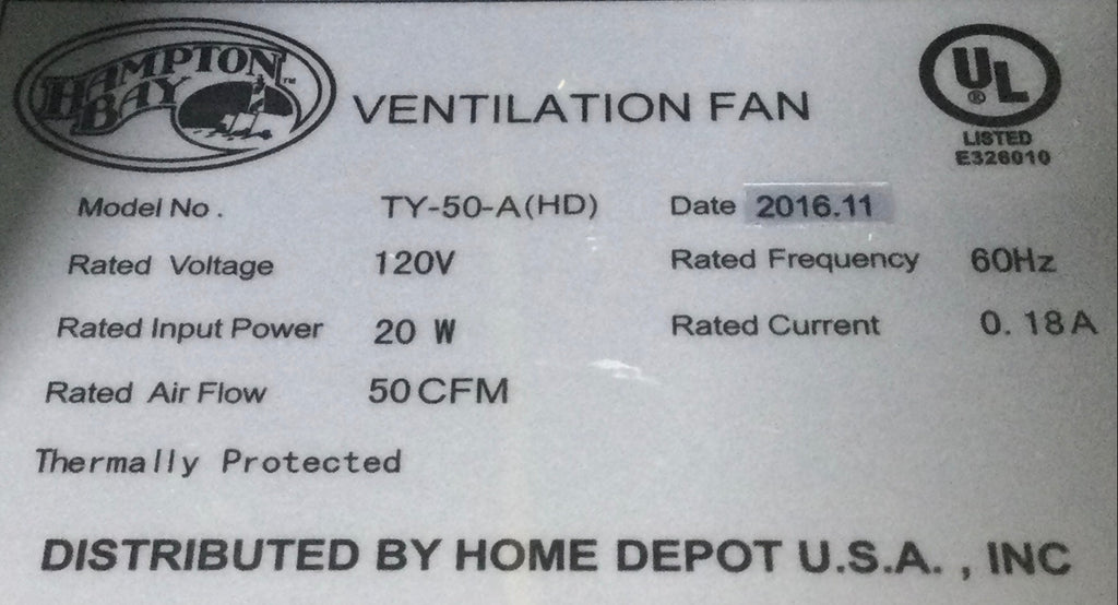 Hampton Bay 986755 0.18 Amp 120V 50 CFM/PCM Ultra Quiet Ventilation Fan