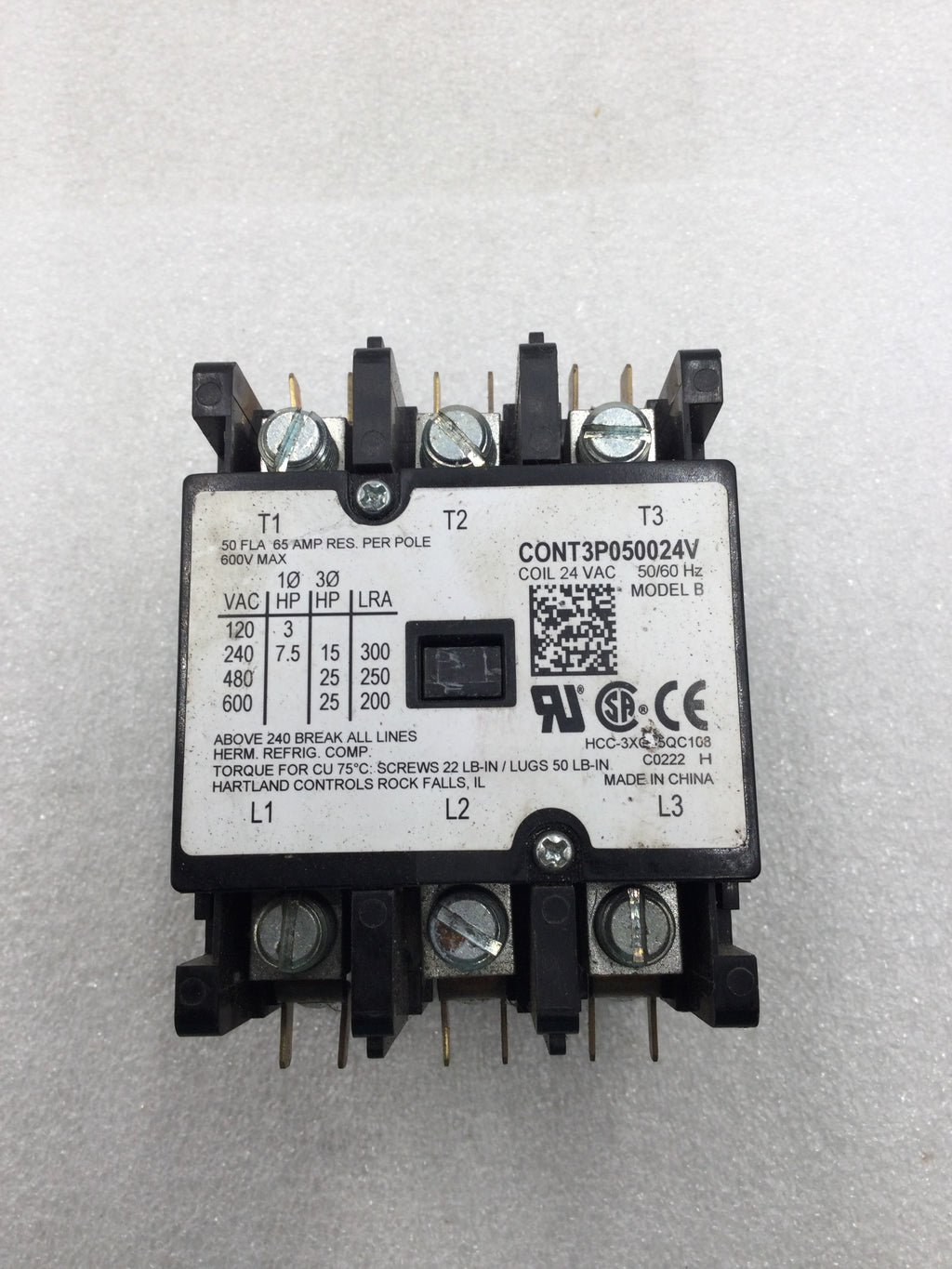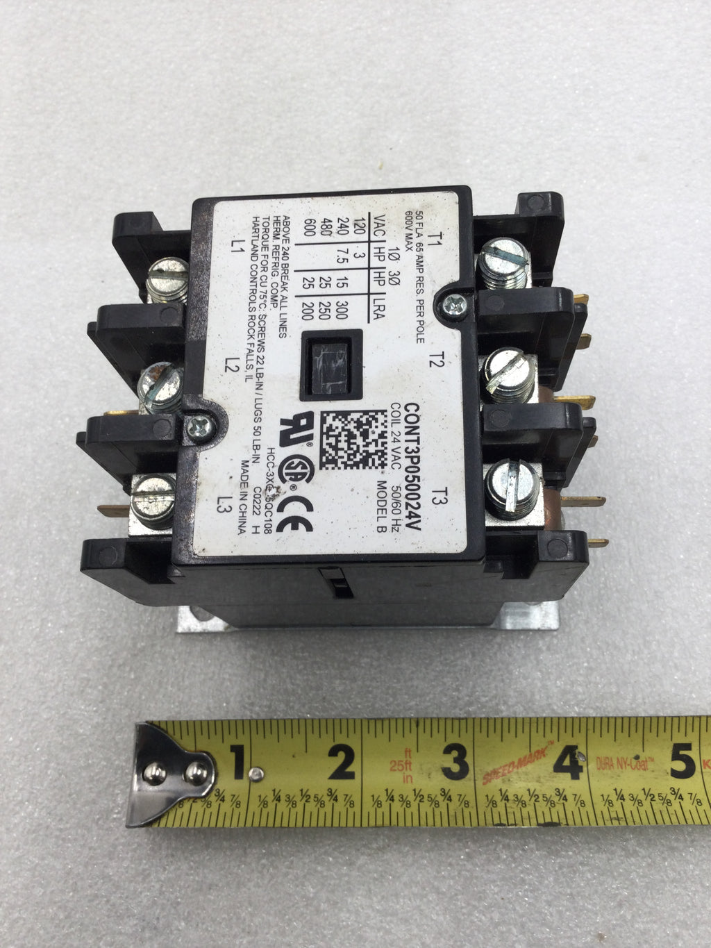 Herm Refrigeration CONT3P050024V 50 Amp 3 Pole 120-600V Contactor w/ 24V Coil