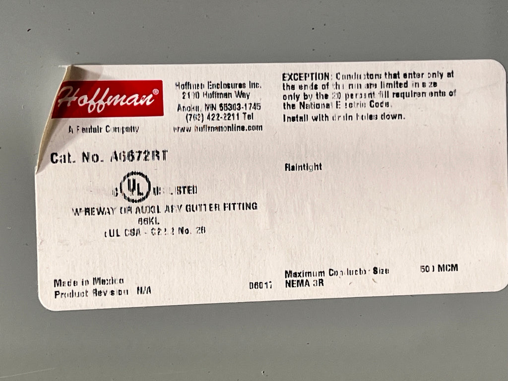 Hoffman Raintight Enclosure A6672RT 72"x 6"x 6"