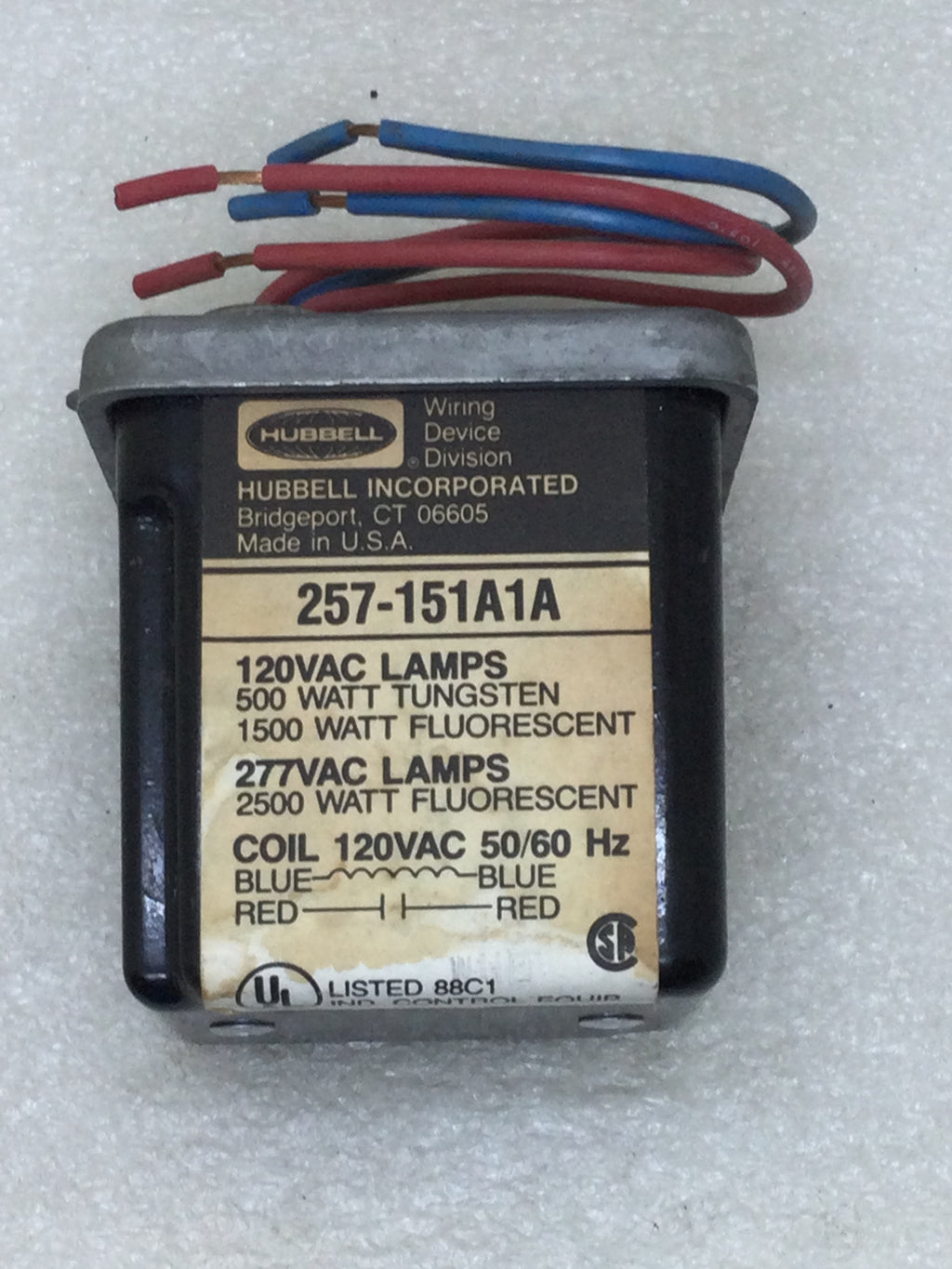 Introducing the Hubbell H-MOSS 257-151 A1A Lighting Relay. With a 120 VAC coil and the ability to handle 120/277 VAC lamps, this relay provides reliable control over lighting systems. Save energy and improve efficiency with the 257-151 A1A's intelligent design.