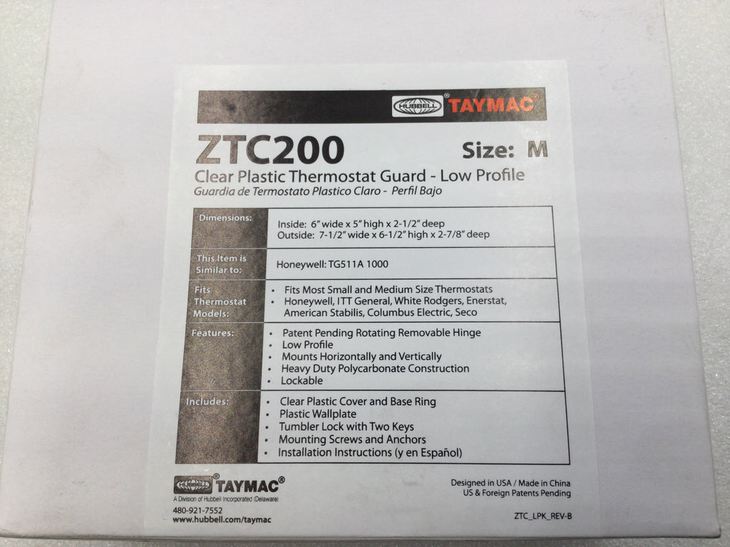 This Hubbell/TayMac thermostat guard is designed to protect your thermostat from unauthorized adjustments or damage. Made of clear plastic, it allows for easy visibility and access to the thermostat while maintaining its security. Its dimensions of 7-1/2" x 6-1/2" x 2-7/8" make it suitable for most thermostats.