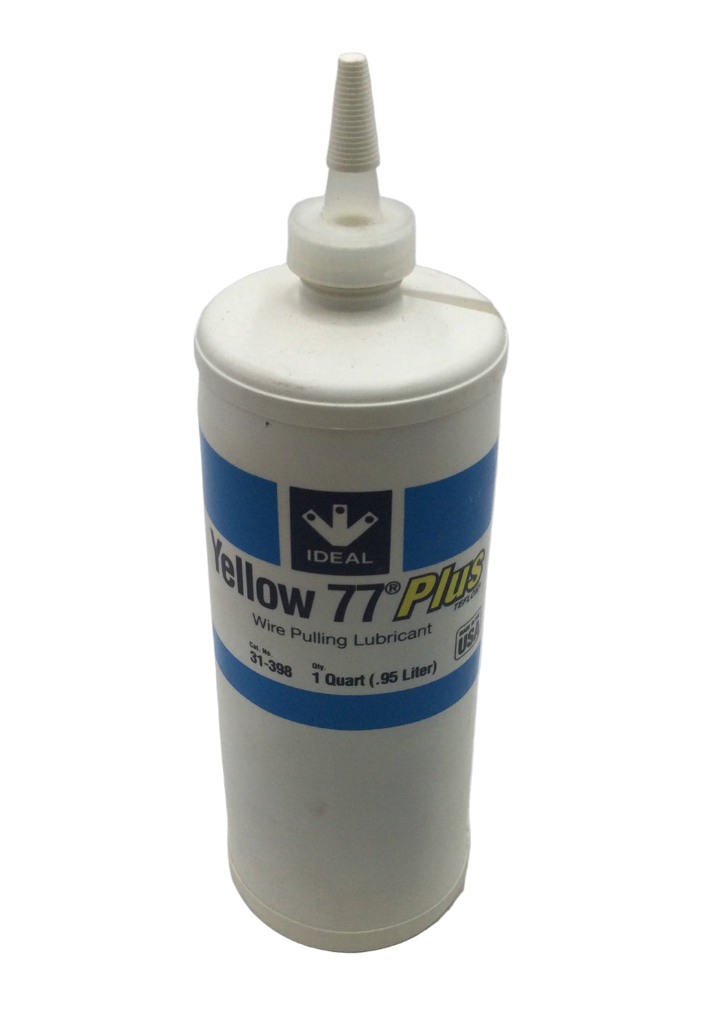 Ideal 31-398 Yellow 77 Plus Wire Pulling Lubricant in a 1 quart (.95L) squeeze bottle reduces friction for easier wire installation. Its advanced formula protects cables and conduit, minimizing pull force and preventing damage during pulling. Ideal for electrical professionals seeking efficient, reliable lubrication in tough jobs.