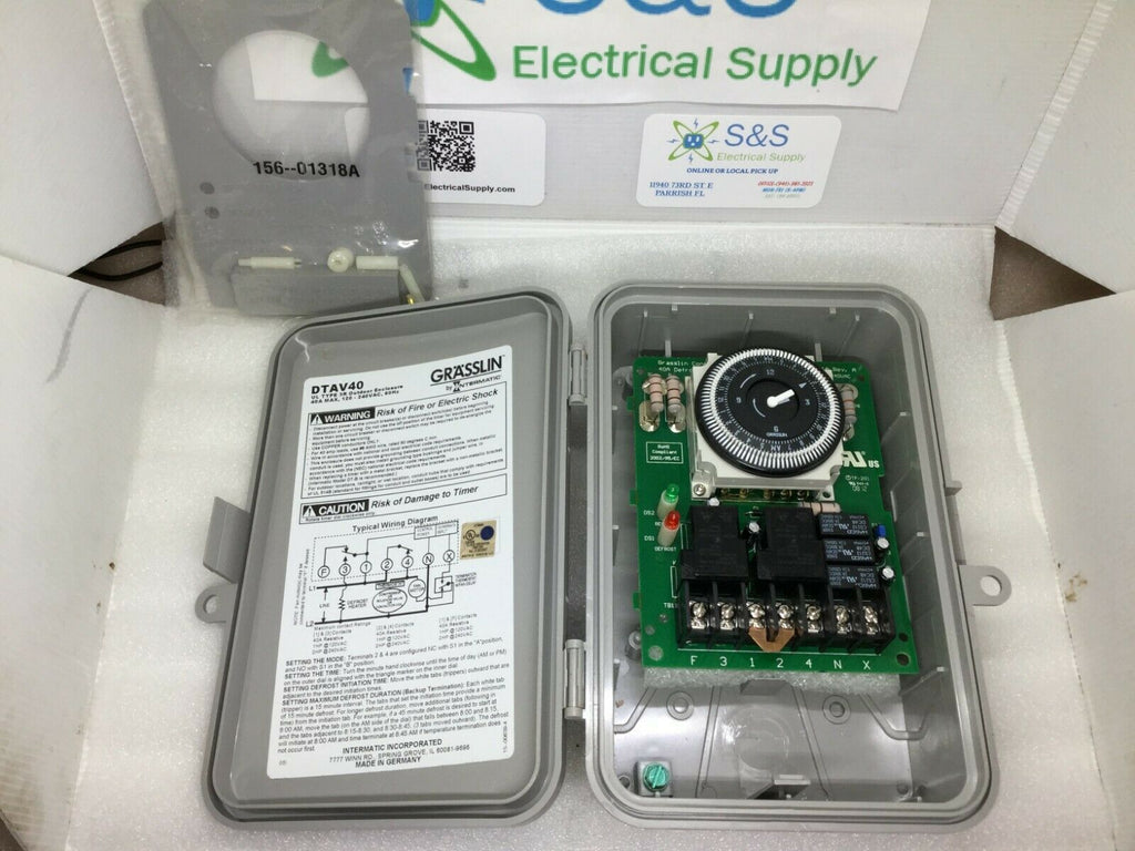 The Intermatic Grasslin DTAV40JS is a robust 40 Amp defrost timer designed for 120/240V electric systems. It offers precise 24-hour timing control, ideal for managing defrost cycles in refrigeration and HVAC applications. Engineered for reliability and accuracy, this timer helps optimize system performance and energy efficiency by ensuring defrost operations occur only when needed. Its durable construction supports long-term use in demanding environments, making it a trusted choice for professional installations.